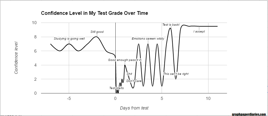 I literally have the exact same reaction to tests that I had in first grade, though I use more profanity now. Every time I get near a test, my emotions go something like this: