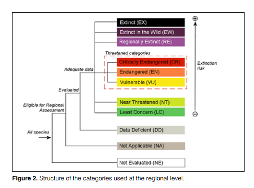 Turns out, it’s actually the latter! This is probably well known to anyone in to conservation, but the classification system is actually put out by the International Union for Conservation of Nature. It looks like this: