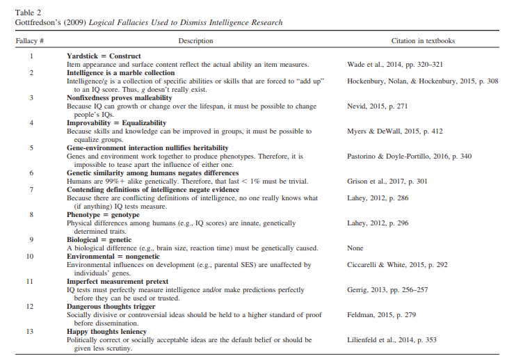 - IQ Fallacies were pretty common The list of possible IQ “fallacies” was drawn from two sources. The first was from this article by Gottfredson et al, which was published after “The Bell Curve” came out and had 52 signatories who wanted to clear up what current research on IQ said. The second paper was a statement from the American Psychological Association, also in response to the publicity around the Bell Curve. They used these two papers to generate the following list: