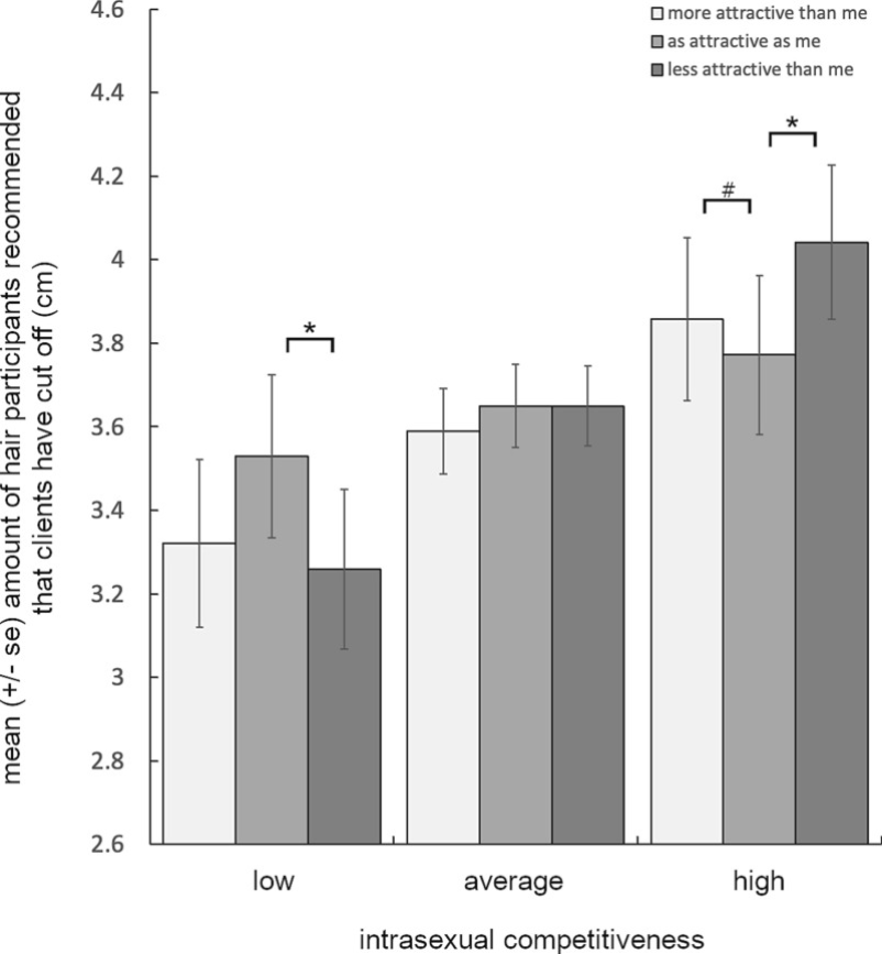 Off With Her Hair Women tell attractive women to cut their hair. The study’s authors are all female. I wonder what it is like for women studying female intrasexual competition. Is it harder to get along, or easier? Bethany, you need to get in on researching the women who research women.